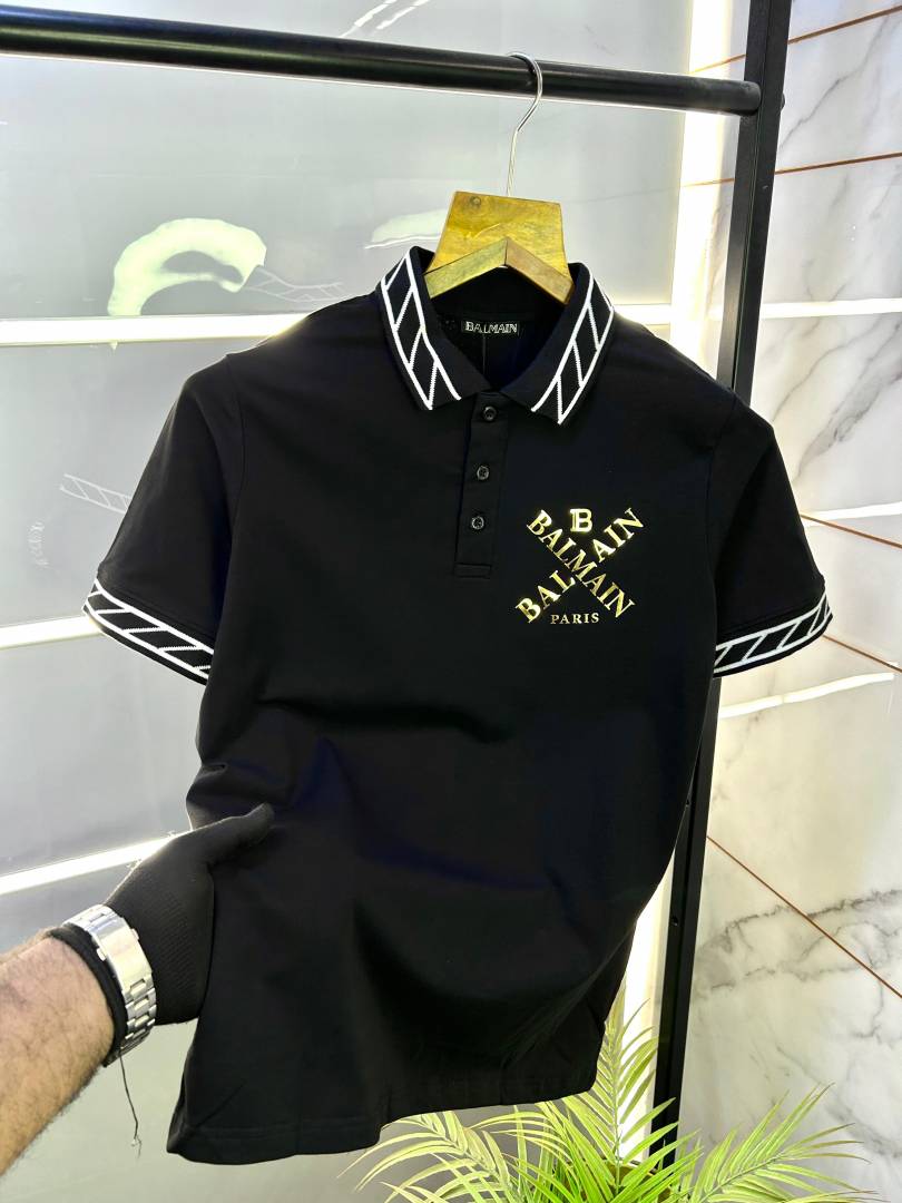 Balmai n Paris Logo Imported Black Collar Neck Premium T-shirt F2831-BL