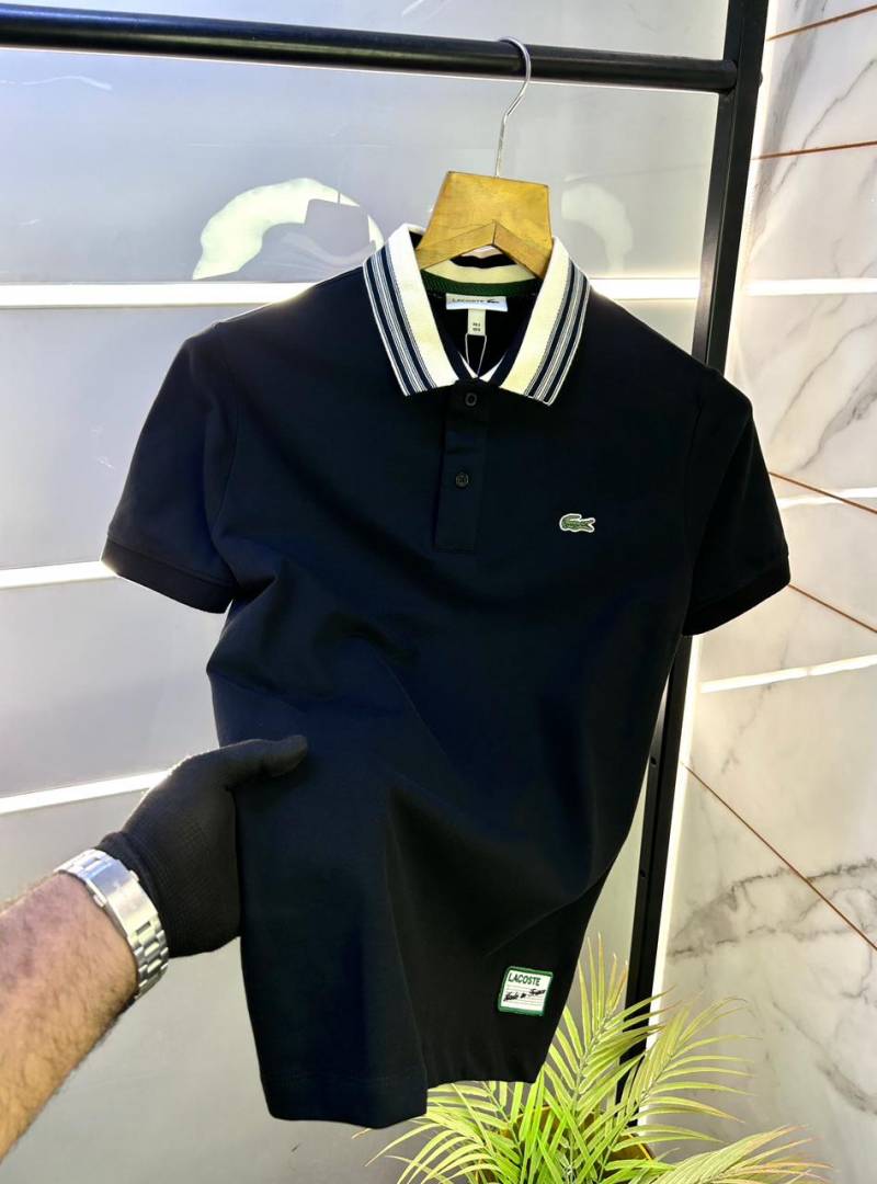 Lacost e Black Polo Premium Collar Neck T-shirt F3056-B1