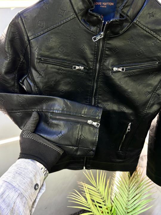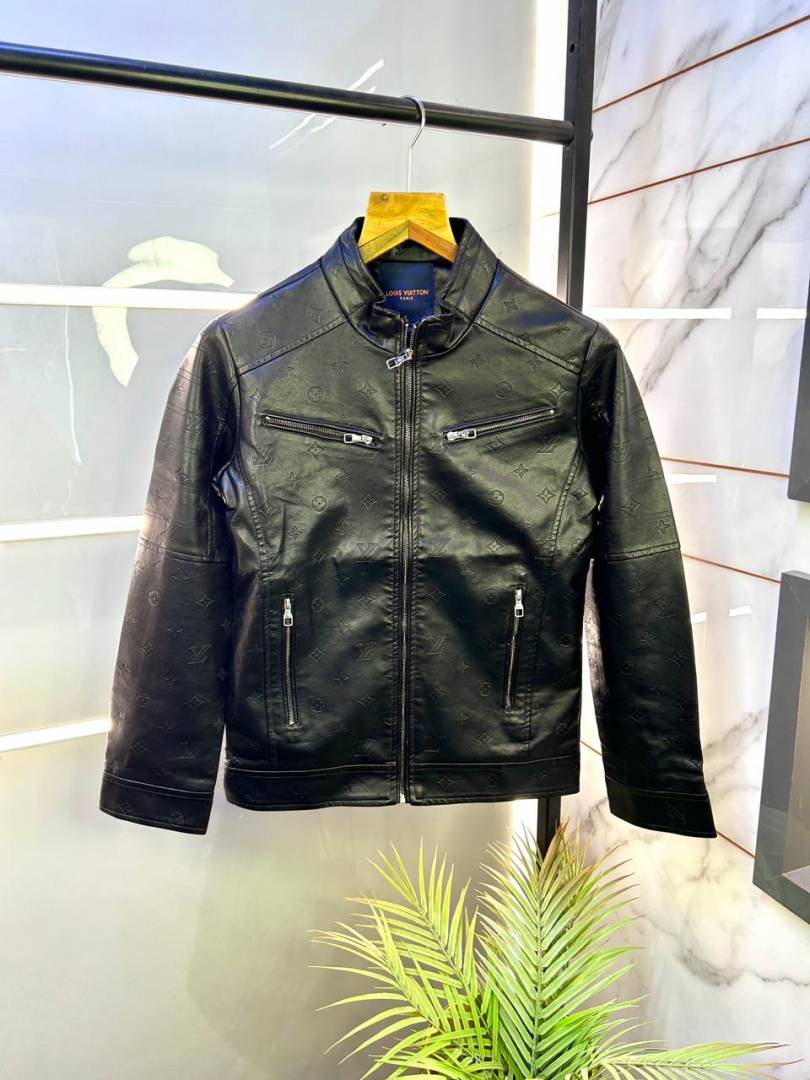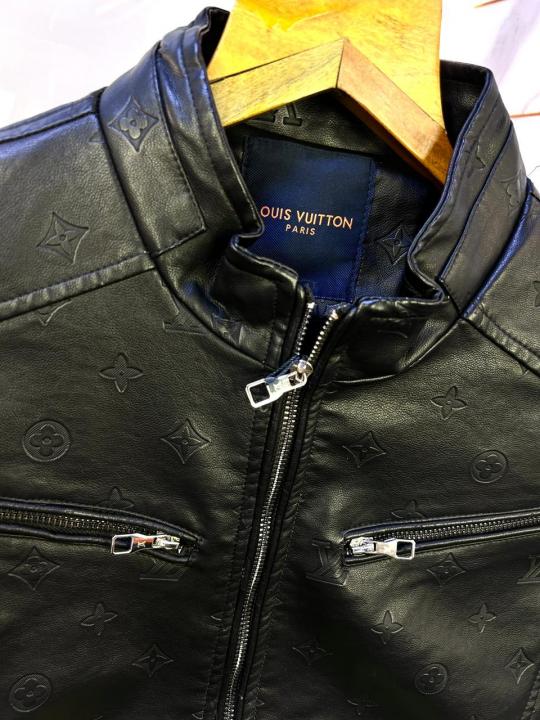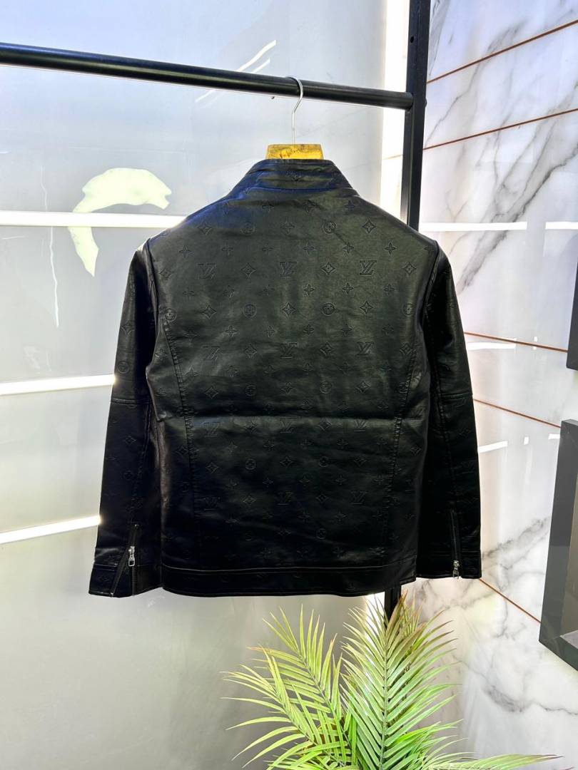 Louis_Vuitton Imported Allover Monogram Leather Super Premium Black Zipper Jacket F2272-BL