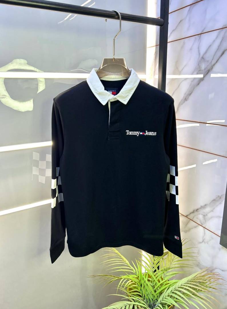 Tommy_Hilfiger Black Polo Neck Full Sleeves Premium Collar T-shirt F3399-B1