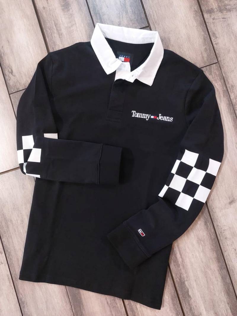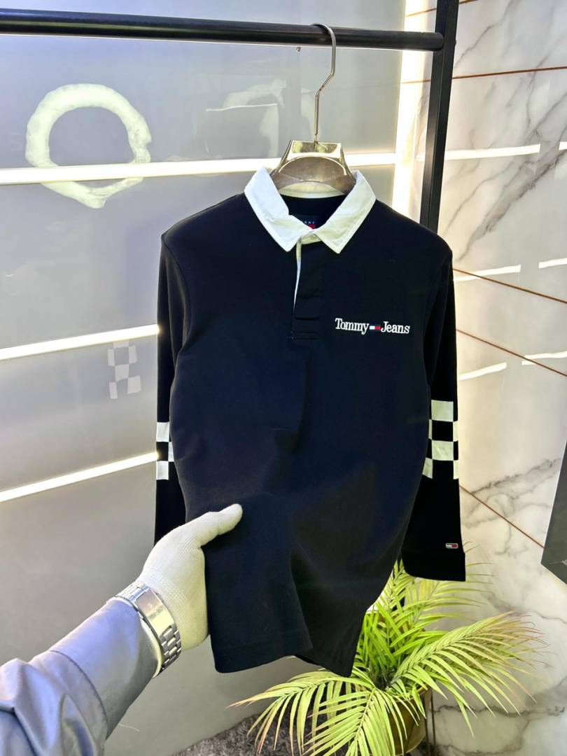 Tommy_Hilfiger Black Polo Neck Full Sleeves Premium Collar T-shirt F3399-B2