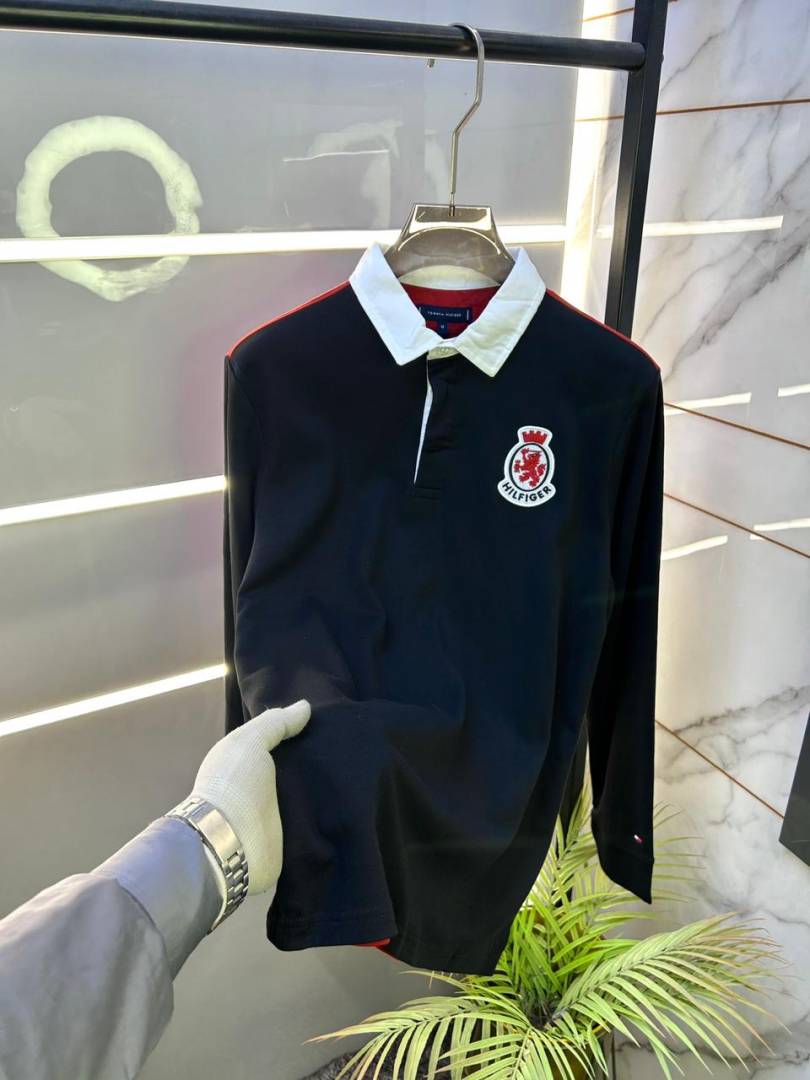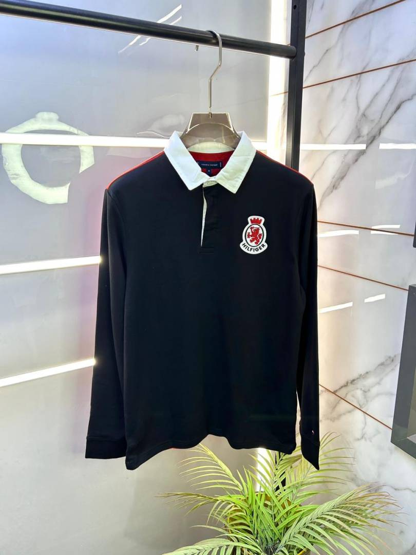 Tommy_Hilfiger Black Polo Neck Full Sleeves Premium Collar T-shirt F3399-B2
