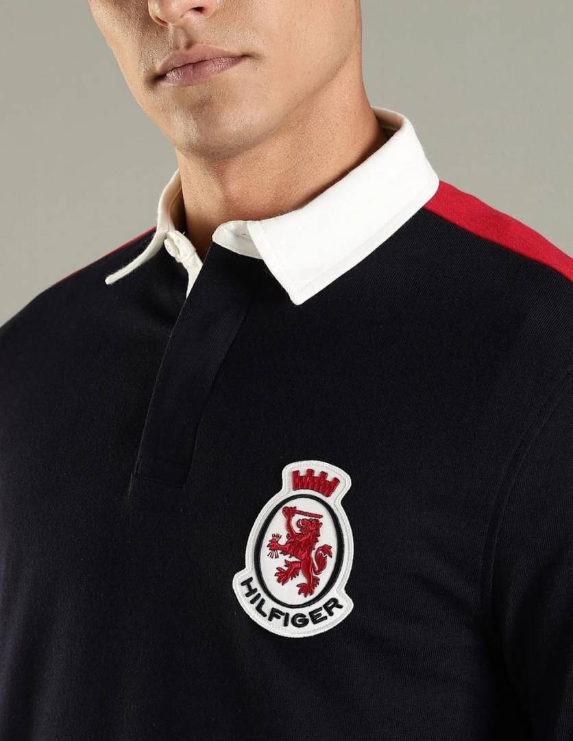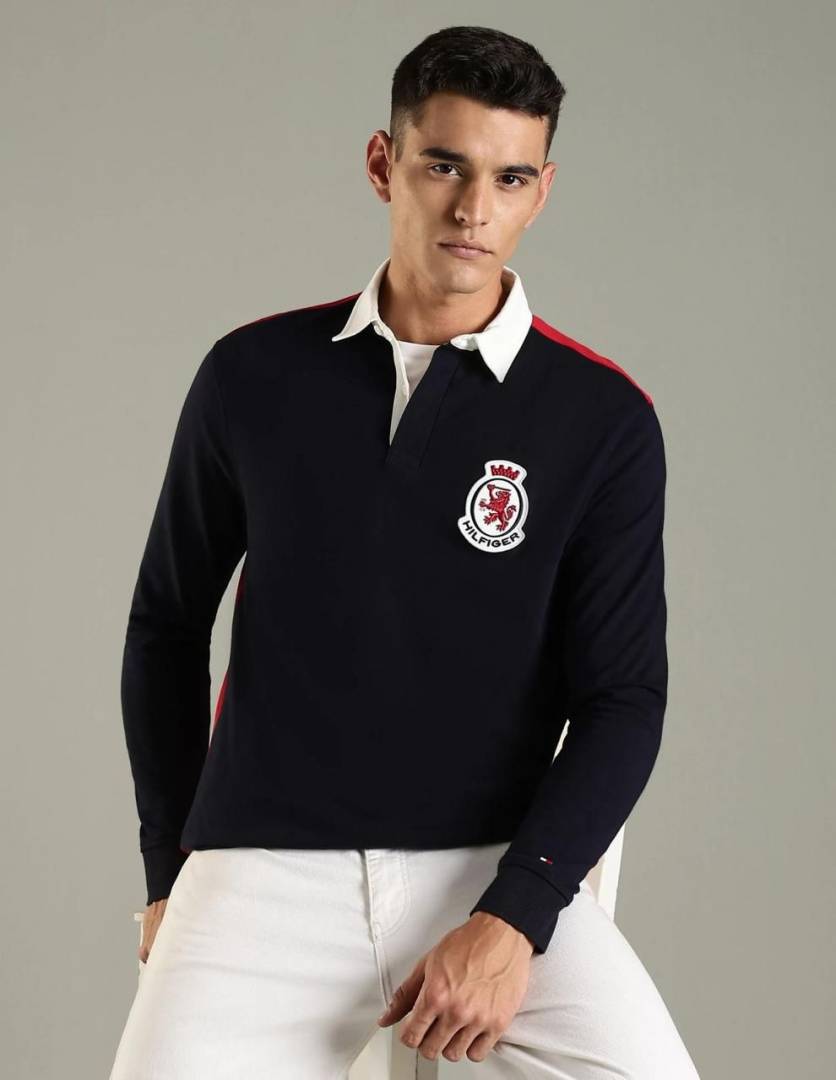 Tommy_Hilfiger Blue Polo Neck Full Sleeves Premium Collar T-shirt F3399-BU