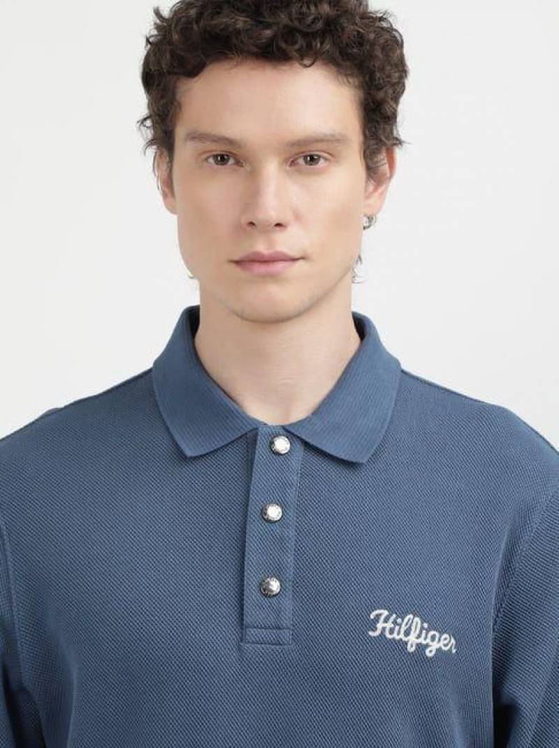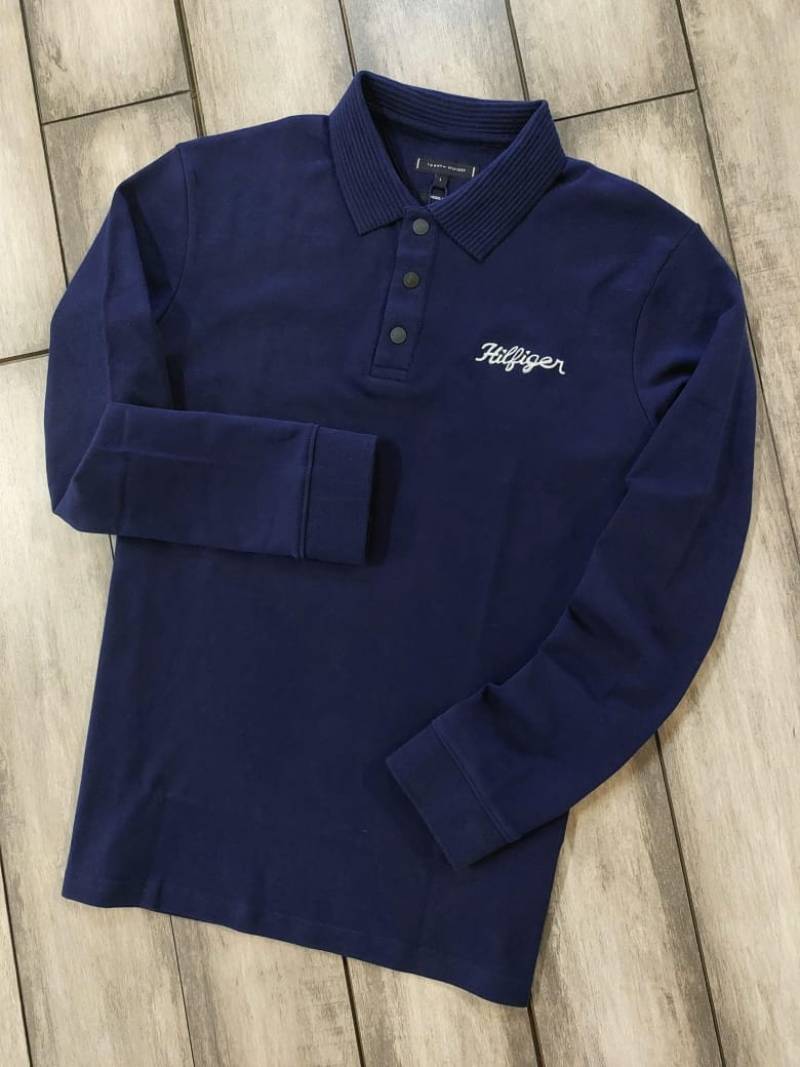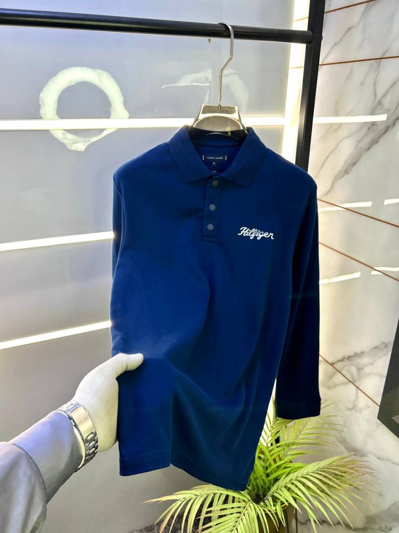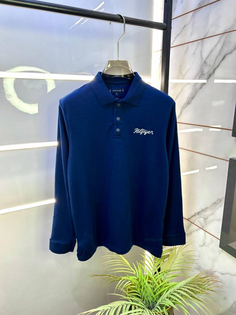 Tommy_Hilfiger Blue Polo Neck Full Sleeves Premium Collar T-shirt F3399-BU