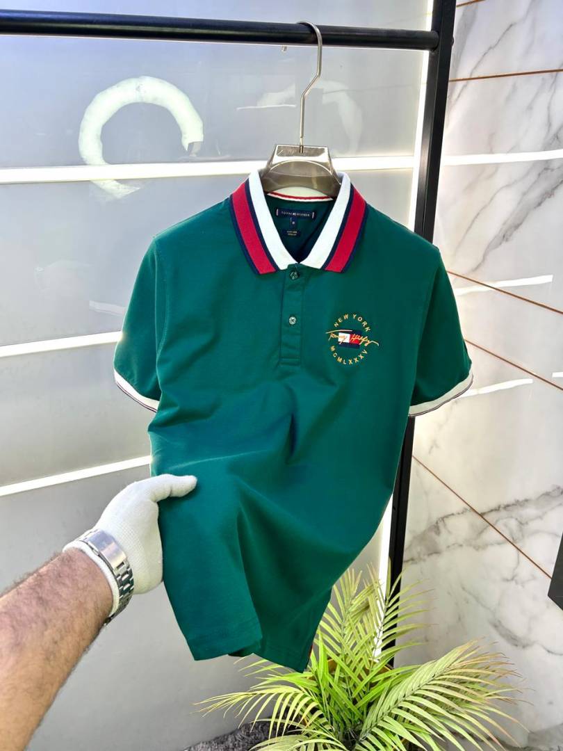 Tommy_Hilfiger Green Embroidery Logo Collar Neck Premium Polo T-shirt F2804-GR