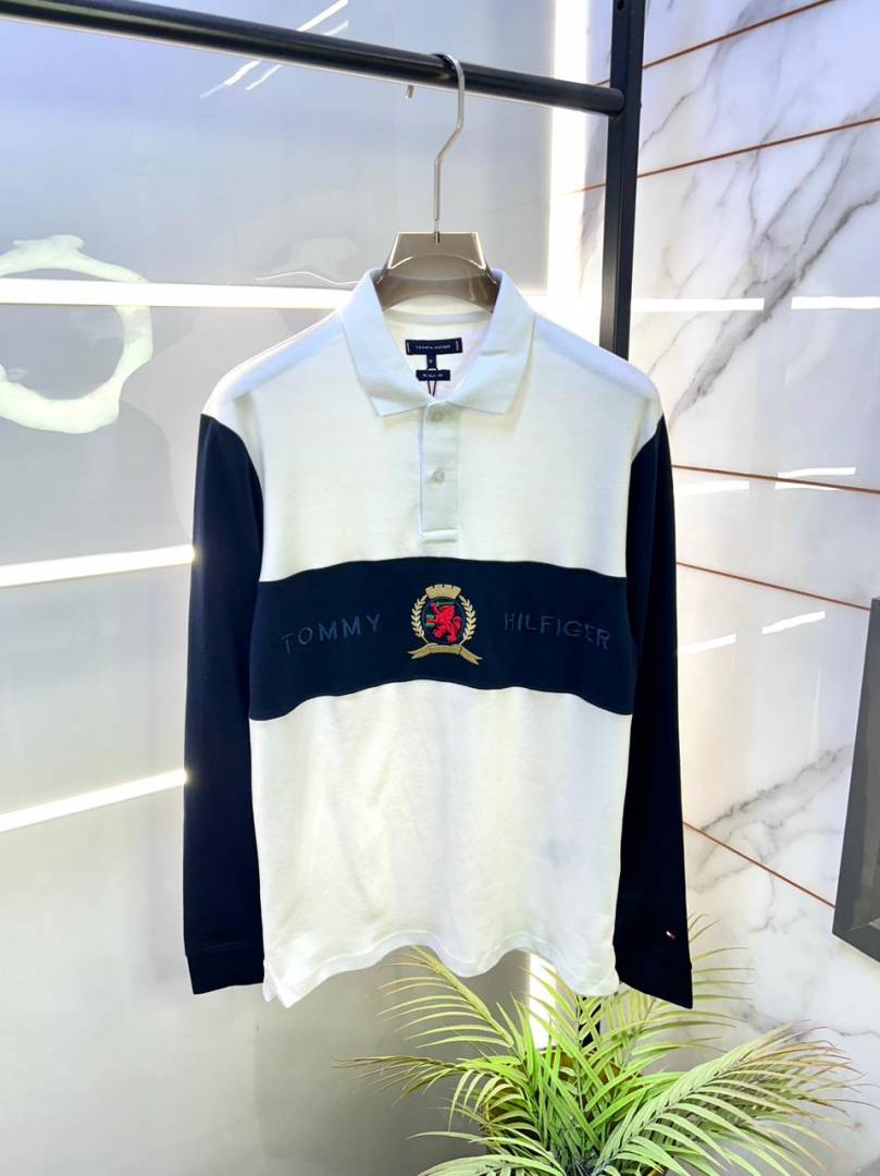Tommy_Hilfiger White Polo Neck Full Sleeves Premium Collar T-shirt F3399-W3